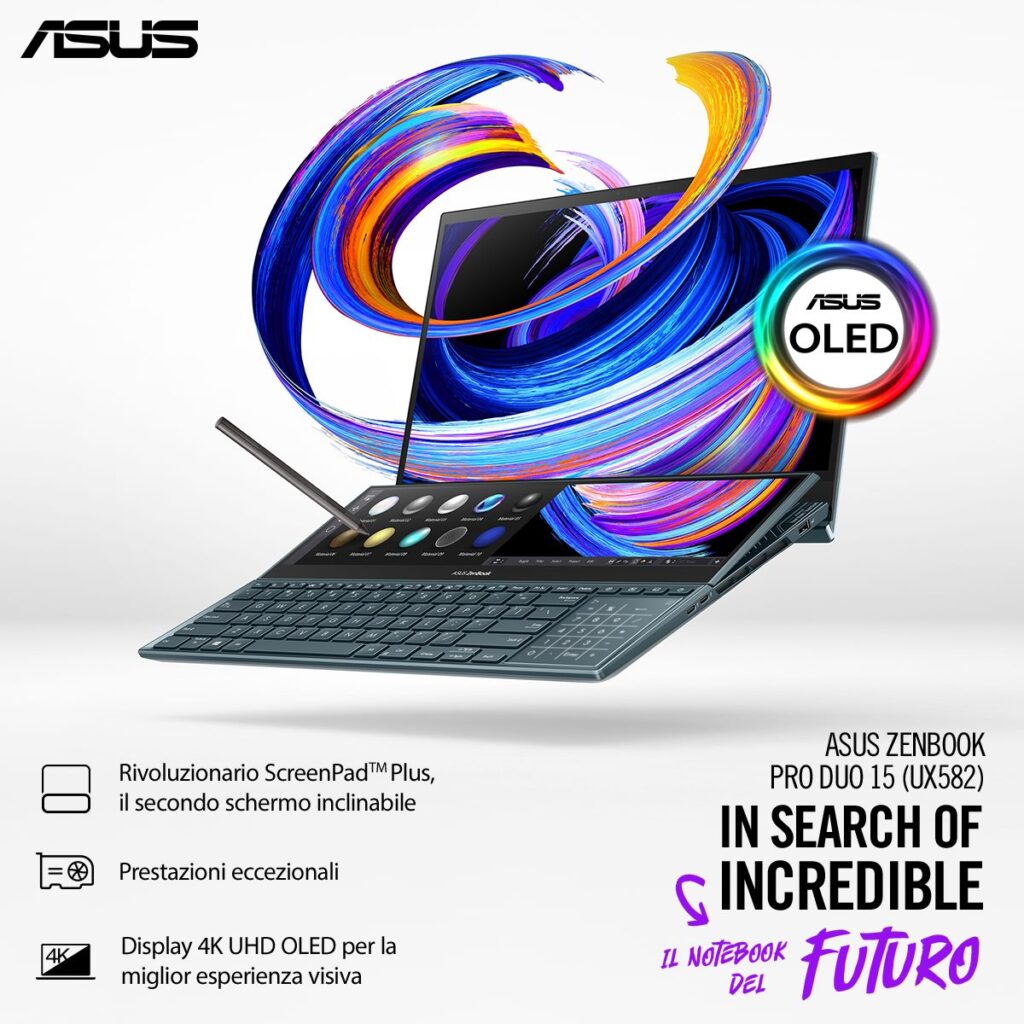 È arrivato il nuovo #ASUS Zenbook Pro Duo 15 (UX582), il #notebook del futuro! Con ScreenPad™ Plus, il secondo schermo inclinabile, per un flusso di lavoro più fluido Prestazioni eccezionali con Intel® Core™ i9 e scheda grafica NVIDIA® GeForce RTX 3070 Display 4K UHD OLED per una miglior esperienza visiva Sei pronto a scoprirlo?