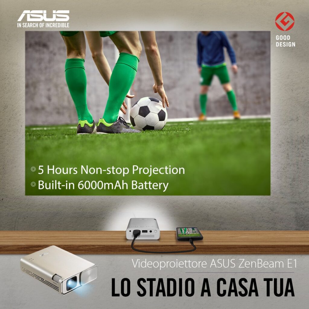 Ti sembrerà come di essere allo stadio a tifare la tua squadra del cuore! Il video proiettore ASUS ZenBeam S2 pesa solo 300 grammi e ti consente di trasmettere su ogni superficie senza rinunciare ad una eccellente qualità visiva fino a 120 pollici! Tante possibilità di connessione, lunga durata della batteria ed auto correzione per […]