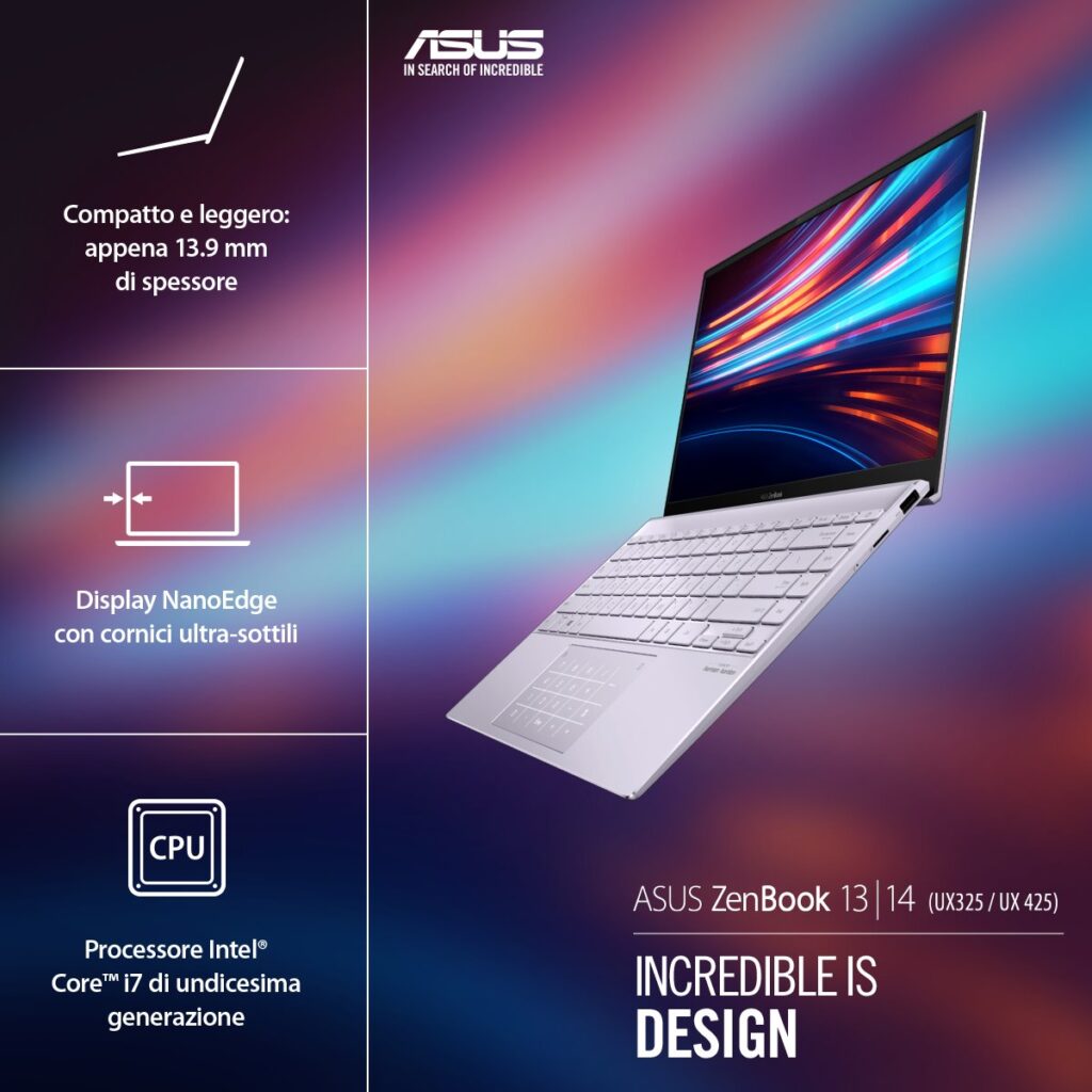 Hai già buttato l’occhio sui nuovi ZenBook 13 | 14 – UX325 / UX425 con processore Intel® Core™ di 11° Generazione? Incredibilmente sottili e leggeri, sono in grado di offrire ai professionisti come te prestazioni potenti e un’esperienza visiva più coinvolgente! I tuoi compagni di lavoro ideale, in ogni occasione