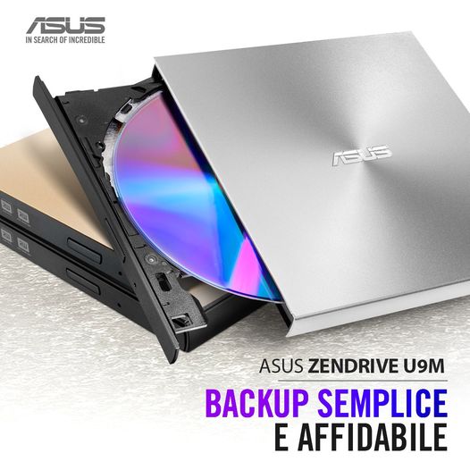 I tuoi dati sono importanti ed ASUS ha un soluzione completa per tenerli al sicuro: il masterizzatore DVD esterno ultra-sottile ZenDrive U9M per PC e MAC. Archivia con stile e facilità grazie alla suite software integrata ideale anche per backup da smartphone e tablet!