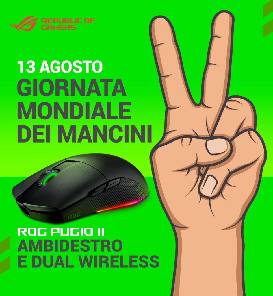 Lo sapevate? Il 13 Agosto è la Giornata Mondiale dei Mancini! Per festeggiarli tutti, ricordiamo che ROG Pugio II, grazie ai suoi pulsanti magnetici configurabili su entrambi i lati, è un mouse DAVVERO ambidestro!